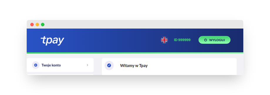 Merchant ID wyświetla się w prawym, górnym rogu po zalogowaniu do panelu Tpay.