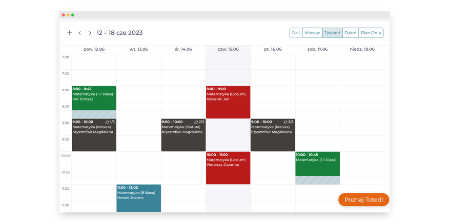 Miejsce gdzie znajdują się wszystkie Twoje spotkania w formie kalendarza, z możliwością widoku całego miesiąca, tygodnia lub dnia.