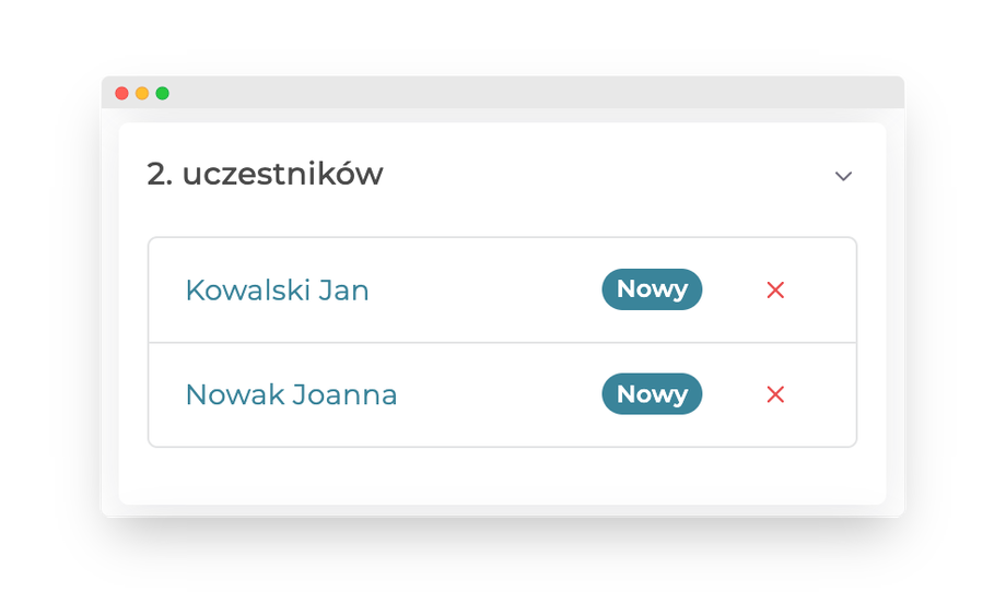 W tej rubryce znajduje się lista uczestników tworzonego / edytowanego spotkania.
