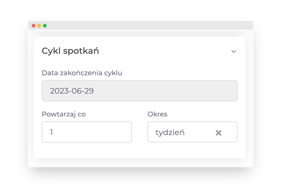 Jeżeli chcesz, możesz wprowadzić cykl spotkań, które będą odbywały się w określonym interwale.