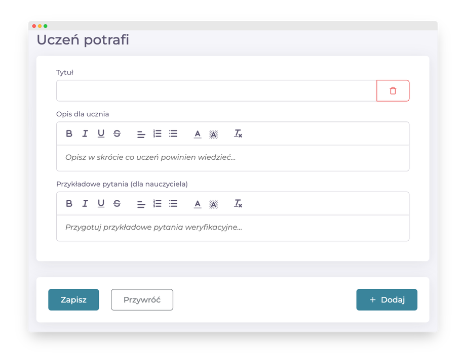 Pro tip: Przykładowe pytania mogą zawierać pytania z odpowiedziami, które możesz zadać uczniowi, aby zweryfikować jego wiedzę na następnych zajęciach. Są one widoczne tylko dla Nauczyciela.