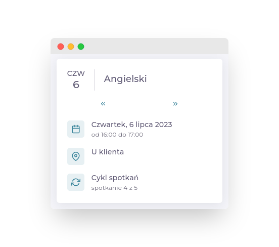 Jeżeli spotkanie jest cykliczne, pod terminem spotkania pojawią się strzałki umożliwiające przełączanie się pomiędzy poprzednimi lub kolejnymi spotkaniami z cyklu.